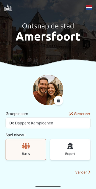Vorm een team van 2 tot 5 personen en bedenk een originele naam. Upload een leuke profielfoto en kies of jullie voor de basisversie of de expertversie gaan, zo bepalen jullie meteen het niveau en de sfeer van de missie. Daarna word je geleid naar de startlocatie, waar het avontuur echt begint.